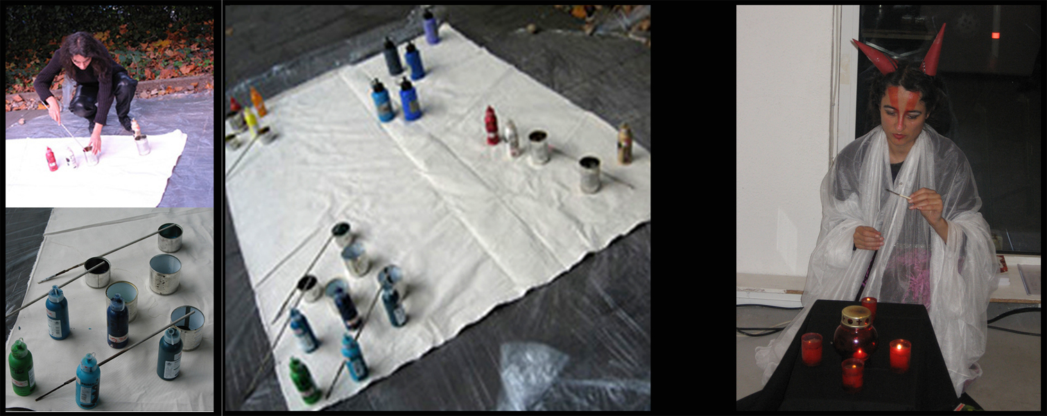 In her performances and intermedia, the artist integrates visual and stage art, sounds and mostly lyrical speech as well as new media. Sie is director of group projects between all arts, in cooperation with actors of music, literature, performance and stage art.